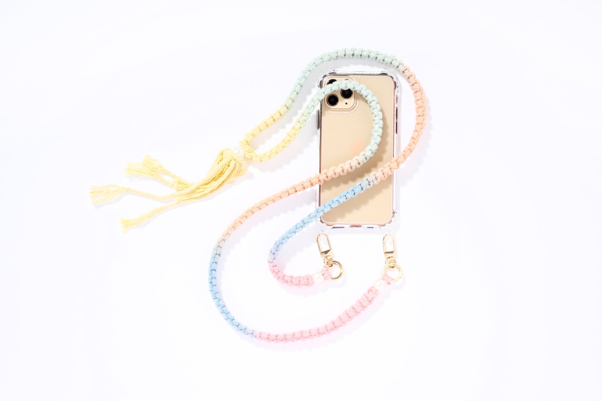 Deck out your iPhone with the stunning Marrakesh Rainbow Band! Specially crafted to mirror your fashion-forward style. The golden lobster clasp effortlessly attaches to any of our phone cases with integrated eyelets.
