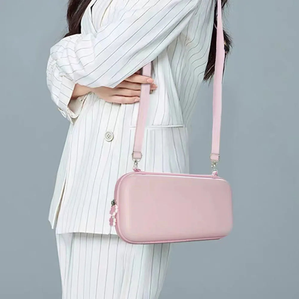 This pink Sakura flower-themed carry bag is crafted from waterproof PU material, providing reliable protection for your Nintendo Switch OLED console. Designed for portability, it features dedicated storage for NS game cards and offers shockproof, dustproof, and waterproof functionality to keep your device and accessories safe during travel. Available in pink, green, and blue, this pouch combines style with expert-level protection.