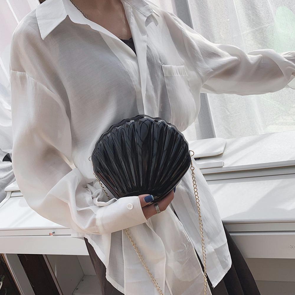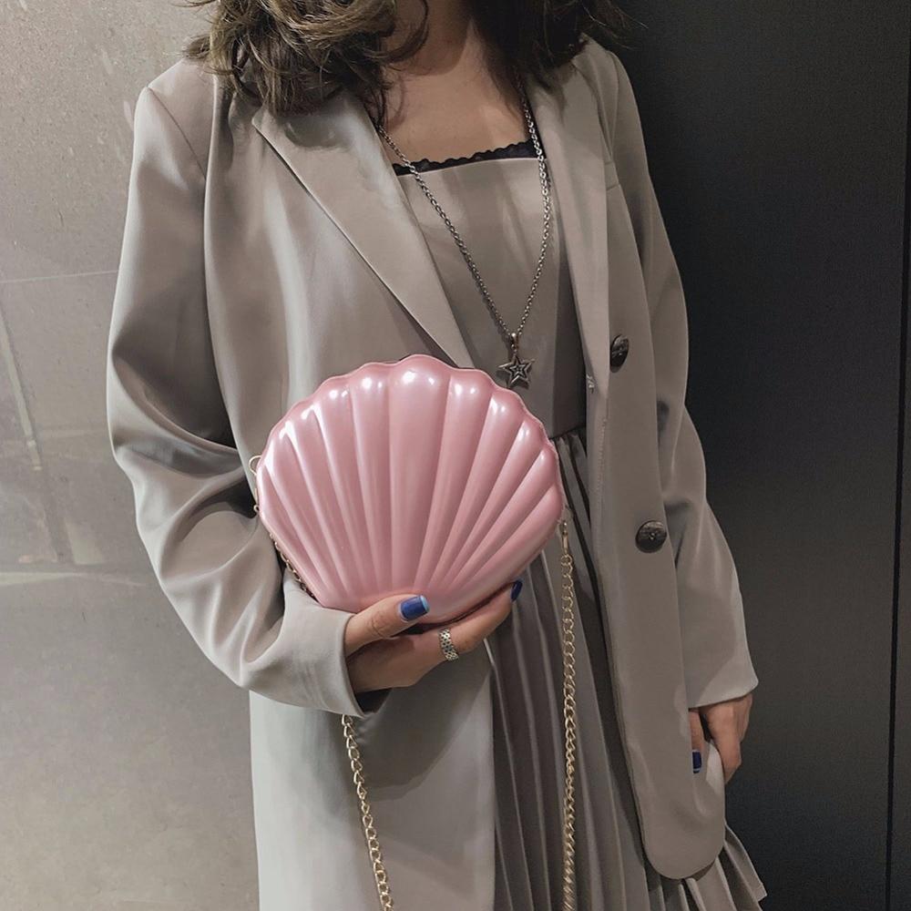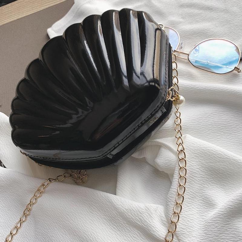 This Shell Chain Shoulder Bag is the perfect addition to any woman's accessory collection. As a messenger bag, it offers practicality and convenience, while the PVC material and solid pattern give it a stylish touch. With a single chain handle and a zipper closure, this bag is both functional and fashionable. Its interior does not have any pockets, providing a clean and sleek look. Its hard shell and polyester lining make it durable and versatile for any occasion.
